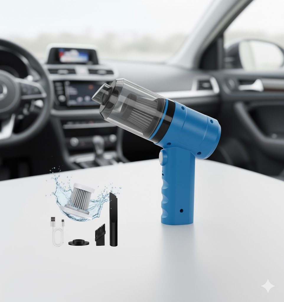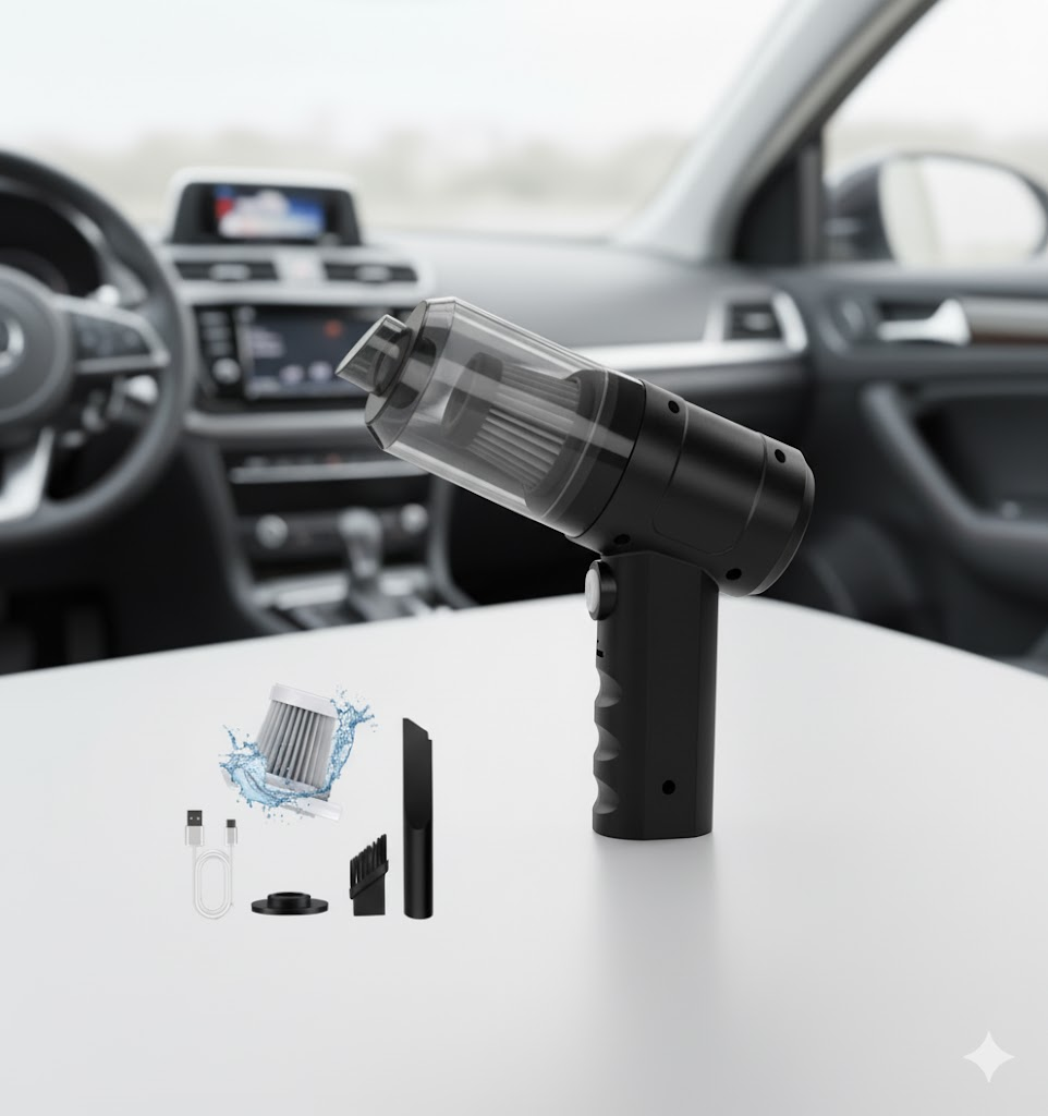 Mocne i skuteczne czyszczenie – kompaktowy odkurzacz bezprzewodowy idealny do samochodu i trudno dostępnych miejsc.
